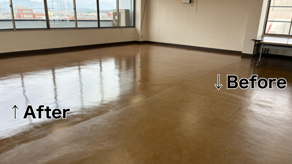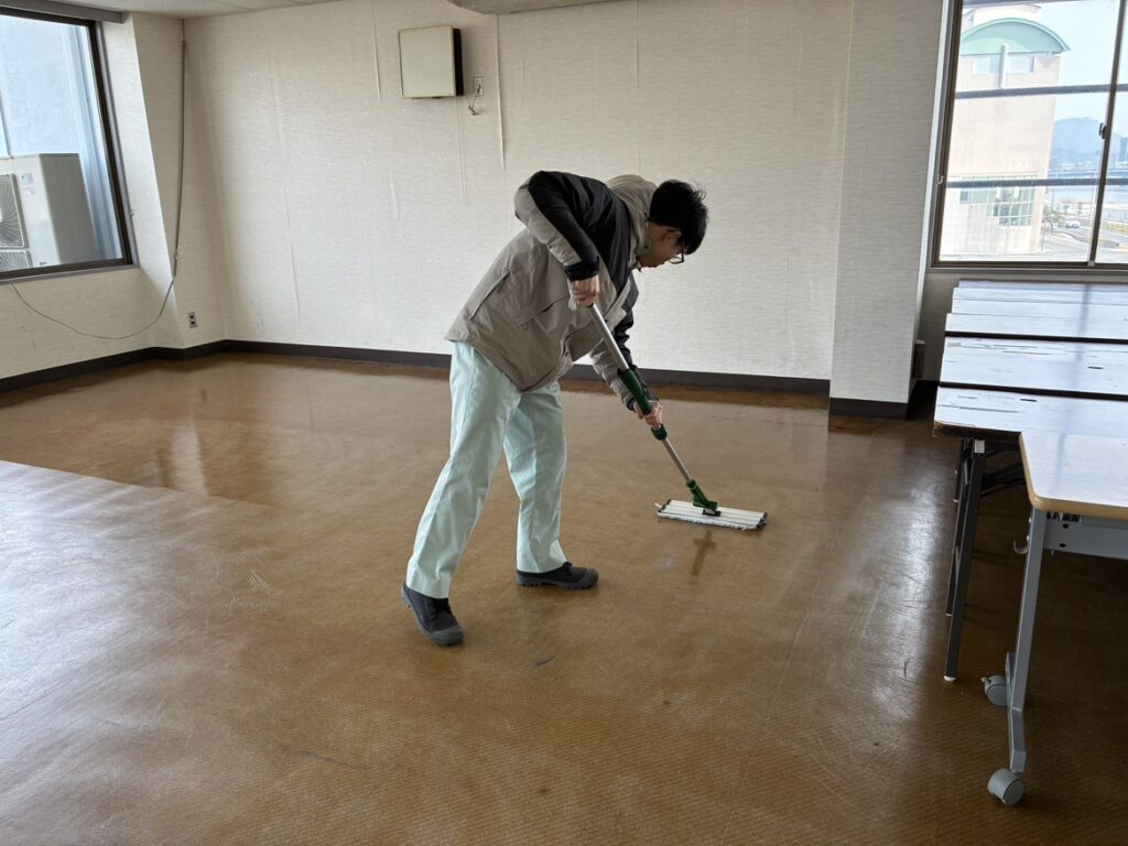 清掃後の床は光が映り込むほどきれいになり、室内全体が明るく感じられる空間になりました。日々使う場所だからこそ、環境が整うことの大切さを改めて感じました。